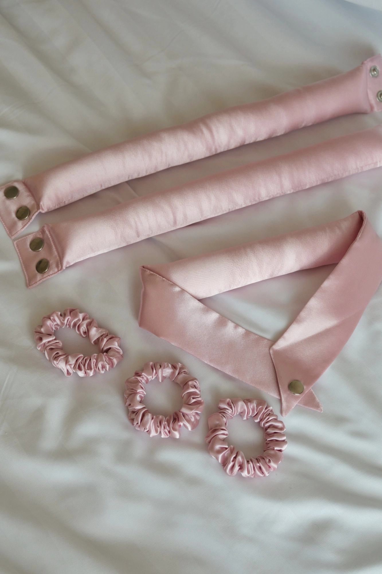Secure the curler on one side with a claw clip and begin twisting the curls around it, starting from the top and going downwards in horizontal sections. Once you get to the bottom, tie the hair around the curler using a hairband, and use a claw clip to hold the curler in place