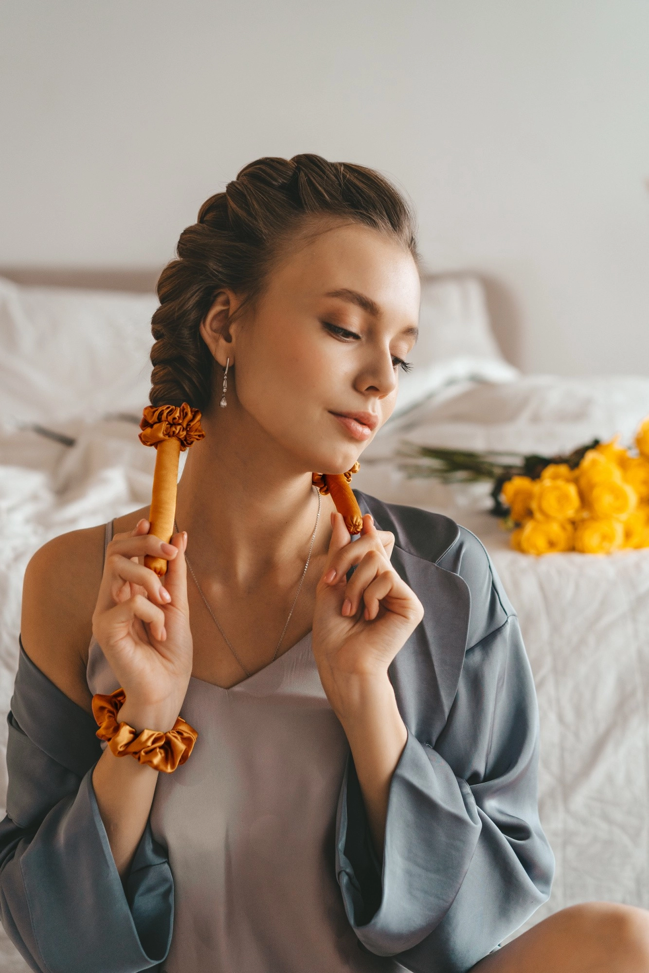 To prevent the curler from falling out at night, secure with a claw clip in the desired position.