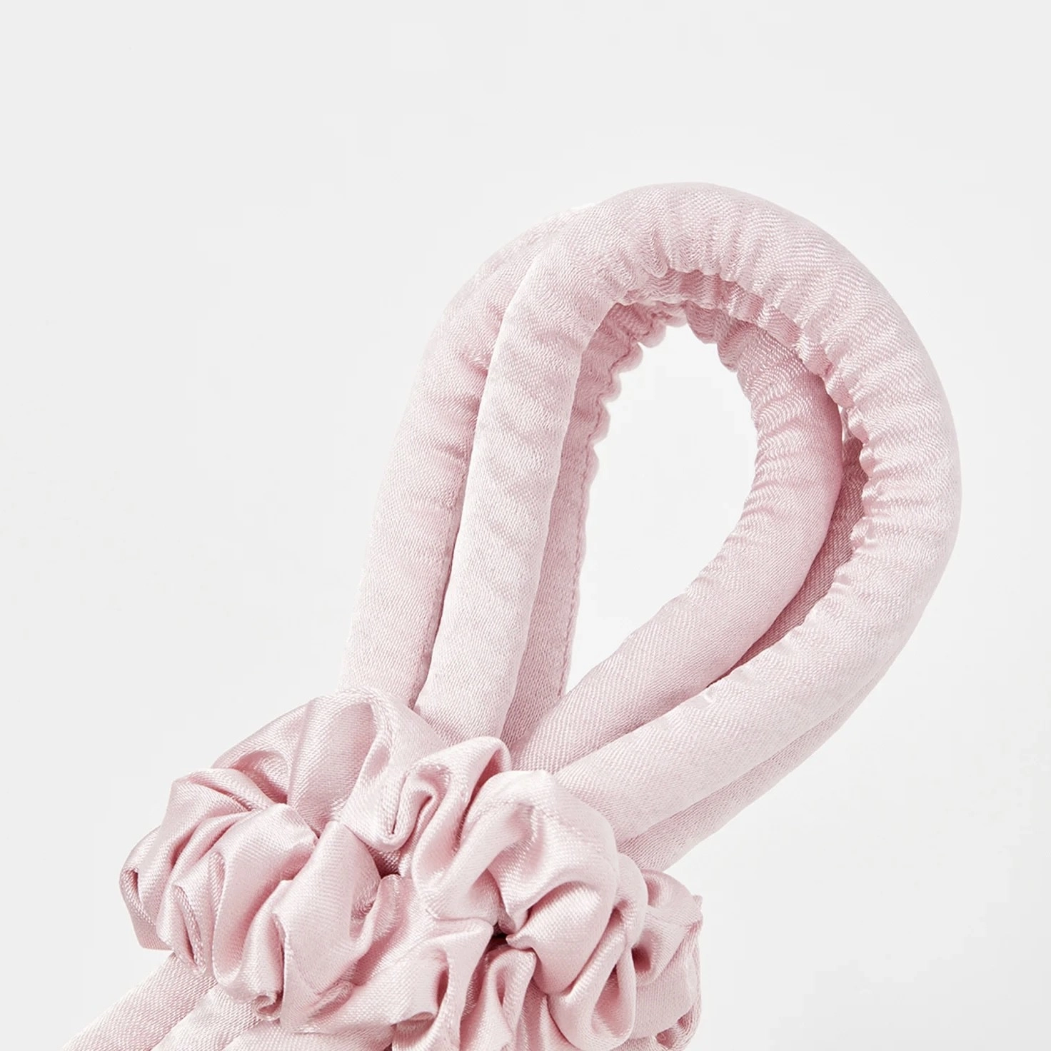 Secure the curler on one side with a claw clip and begin twisting the curls around it, starting from the top and going downwards in horizontal sections. Once you get to the bottom, tie the hair around the curler using a hairband, and use a claw clip to hold the curler in place