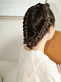 Secure the curler on one side with a claw clip and begin twisting the curls around it, starting from the top and going downwards in horizontal sections. Once you get to the bottom, tie the hair around the curler using a hairband, and use a claw clip to hold the curler in place