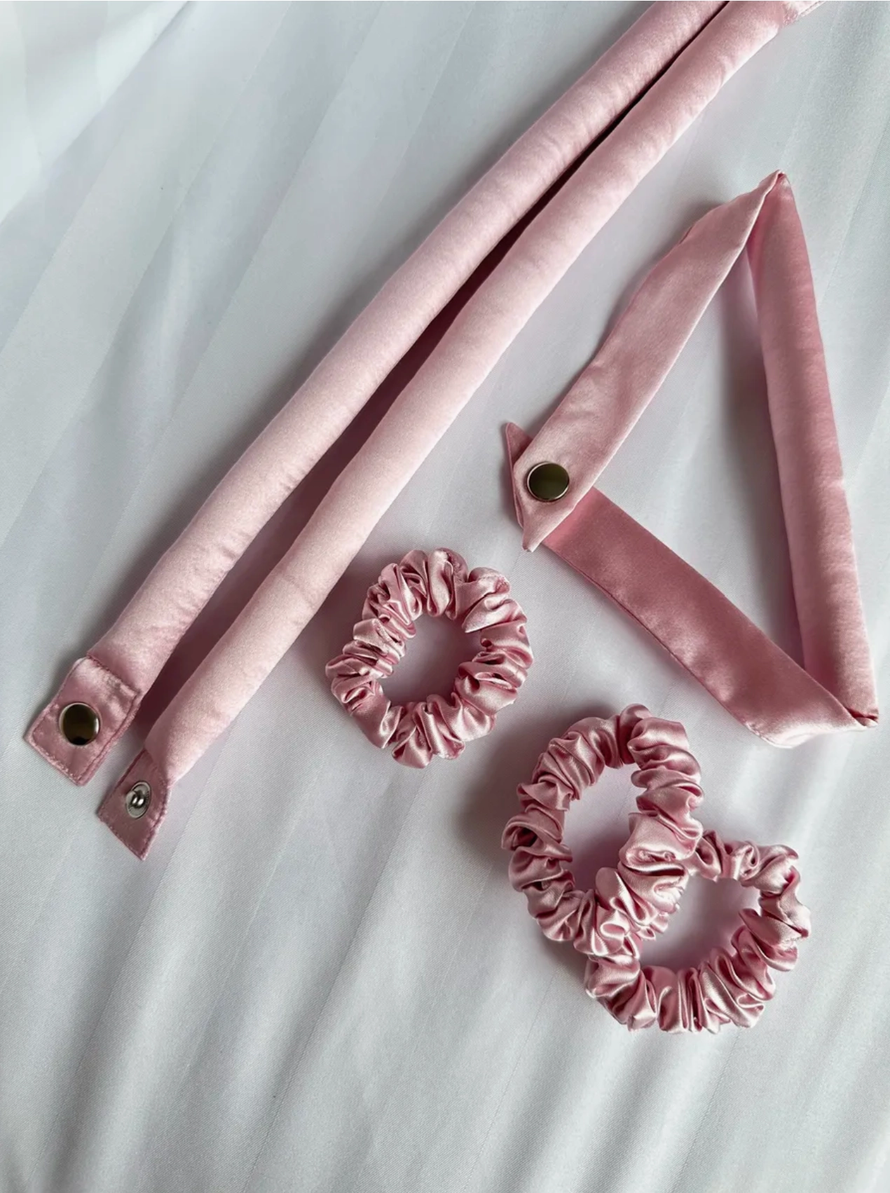 Secure the curler on one side with a claw clip and begin twisting the curls around it, starting from the top and going downwards in horizontal sections. Once you get to the bottom, tie the hair around the curler using a hairband, and use a claw clip to hold the curler in place