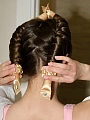Secure the curler on one side with a claw clip and begin twisting the curls around it, starting from the top and going downwards in horizontal sections. Once you get to the bottom, tie the hair around the curler using a hairband, and use a claw clip to hold the curler in place