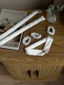 Secure the curler on one side with a claw clip and begin twisting the curls around it, starting from the top and going downwards in horizontal sections. Once you get to the bottom, tie the hair around the curler using a hairband, and use a claw clip to hold the curler in place