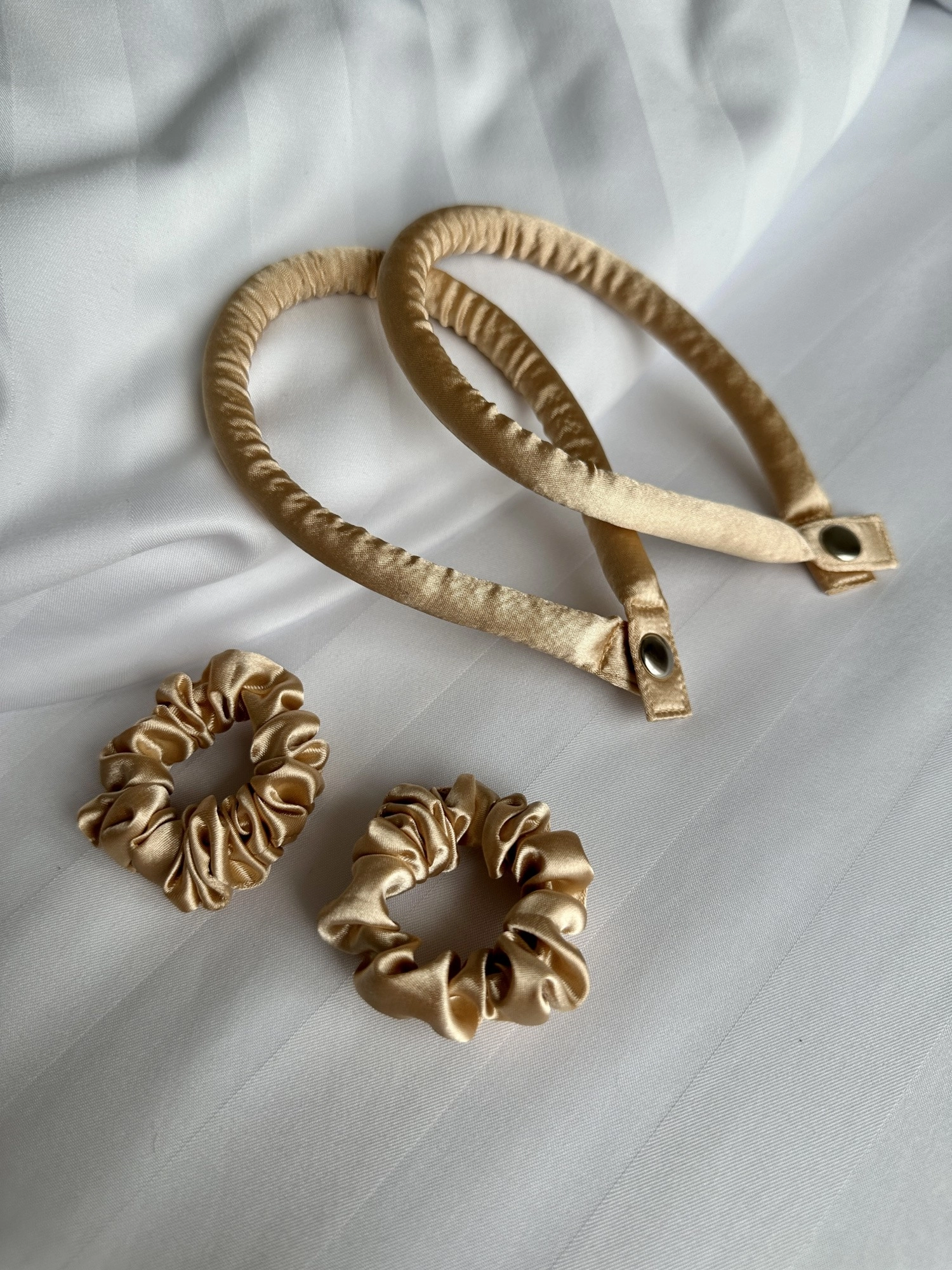 Secure the curler on one side with a claw clip and begin twisting the curls around it, starting from the top and going downwards in horizontal sections. Once you get to the bottom, tie the hair around the curler using a hairband, and use a claw clip to hold the curler in place
