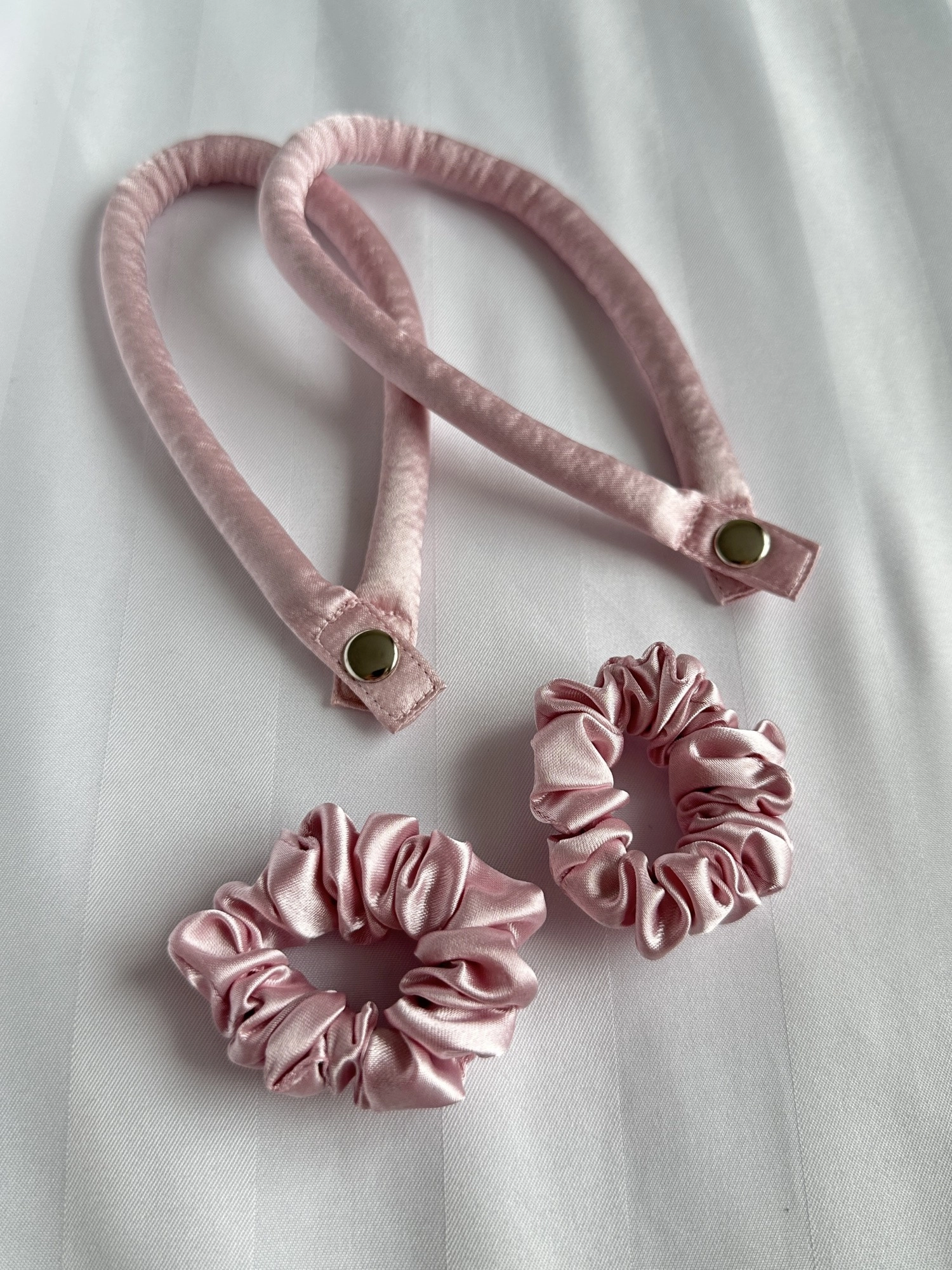 Secure the curler on one side with a claw clip and begin twisting the curls around it, starting from the top and going downwards in horizontal sections. Once you get to the bottom, tie the hair around the curler using a hairband, and use a claw clip to hold the curler in place