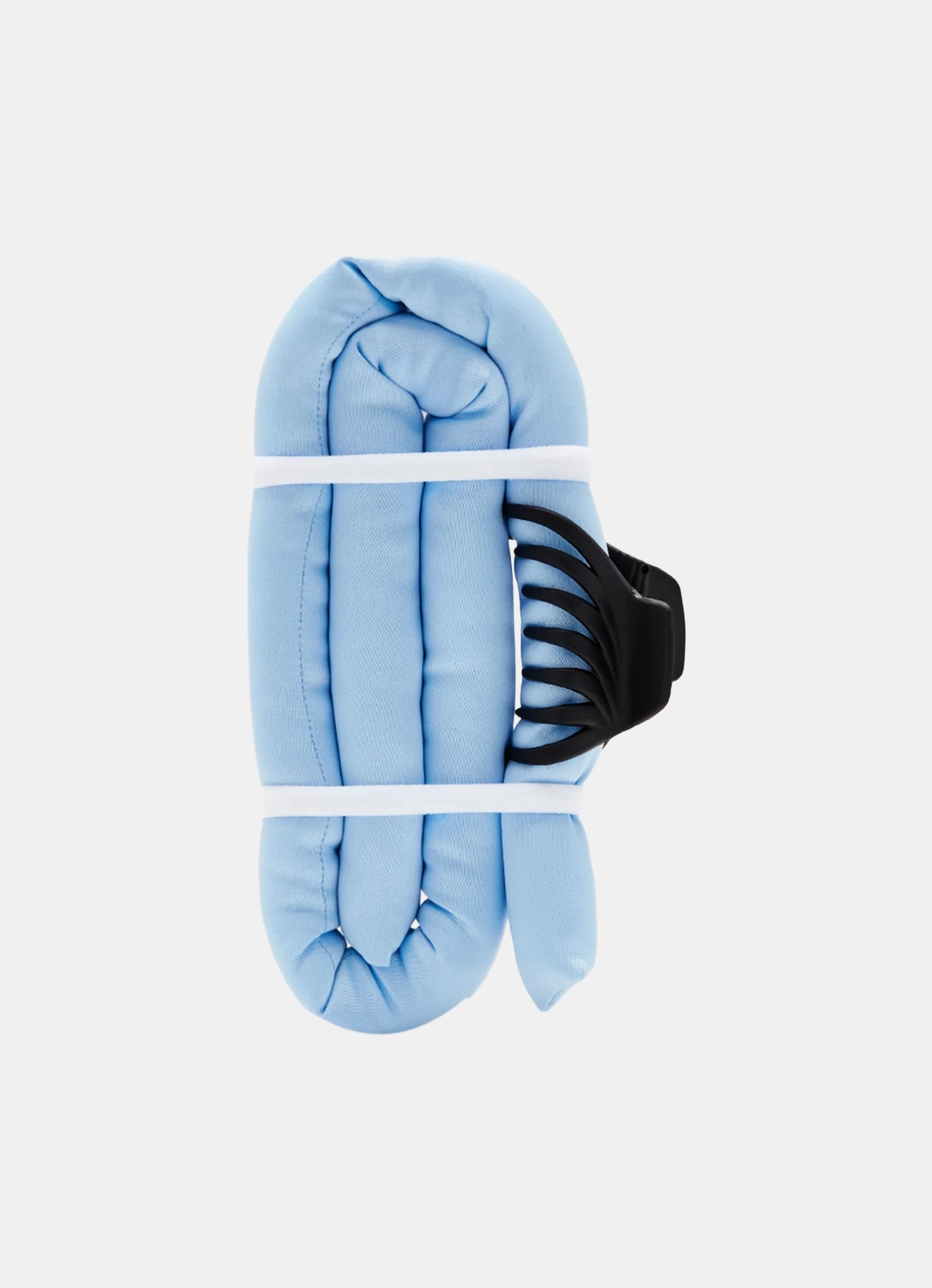 Secure the curler on one side with a claw clip and begin twisting the curls around it, starting from the top and going downwards in horizontal sections. Once you get to the bottom, tie the hair around the curler using a hairband, and use a claw clip to hold the curler in place