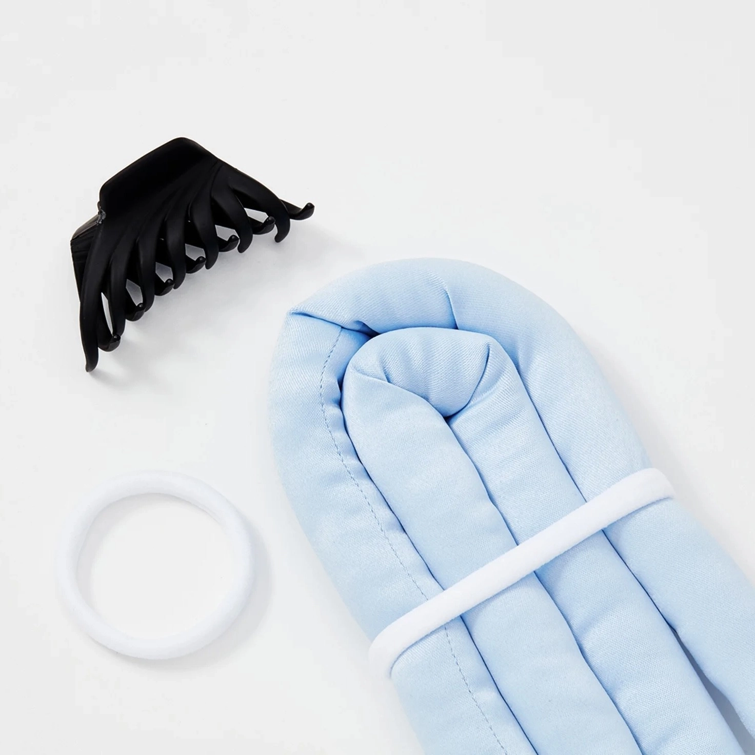 Secure the curler on one side with a claw clip and begin twisting the curls around it, starting from the top and going downwards in horizontal sections. Once you get to the bottom, tie the hair around the curler using a hairband, and use a claw clip to hold the curler in place