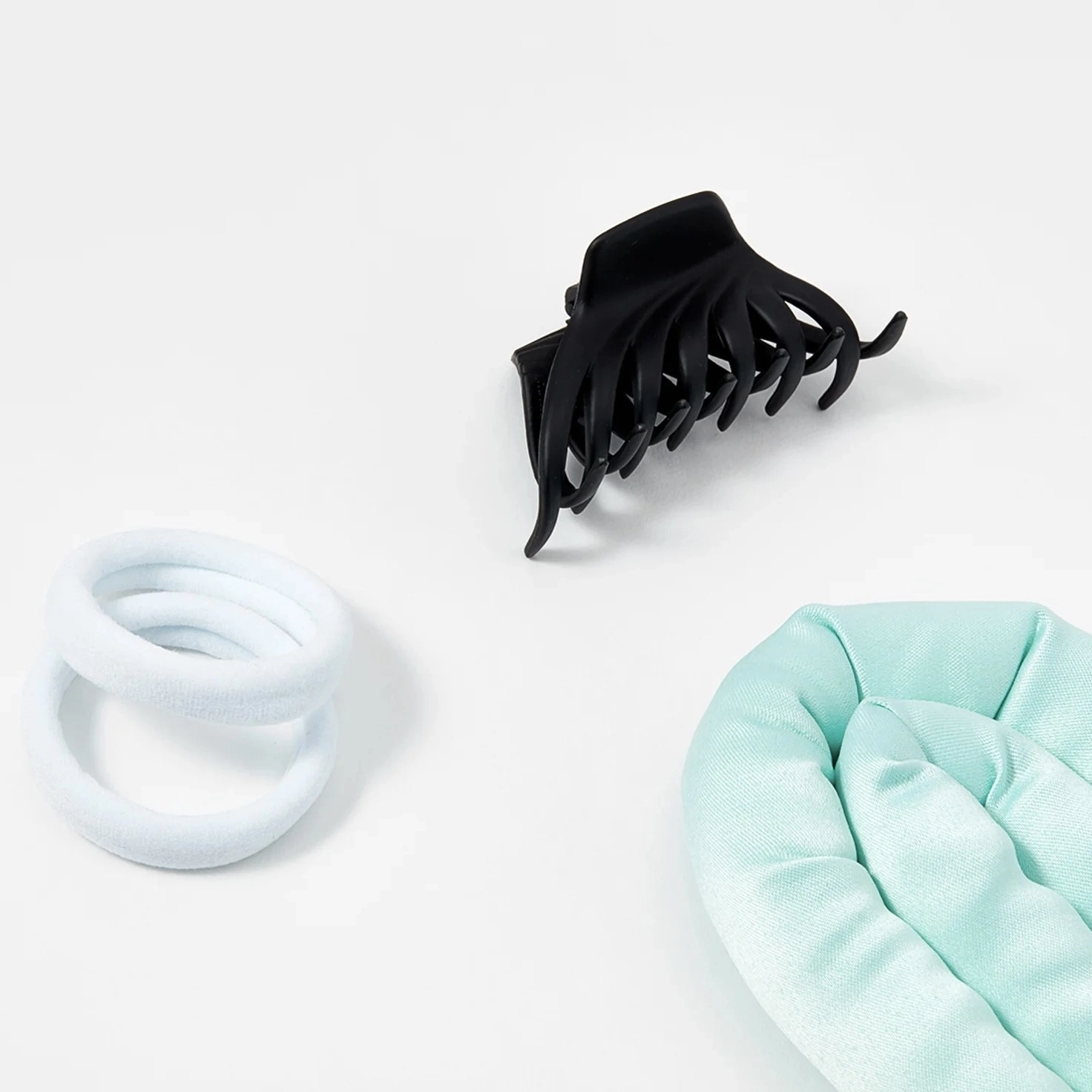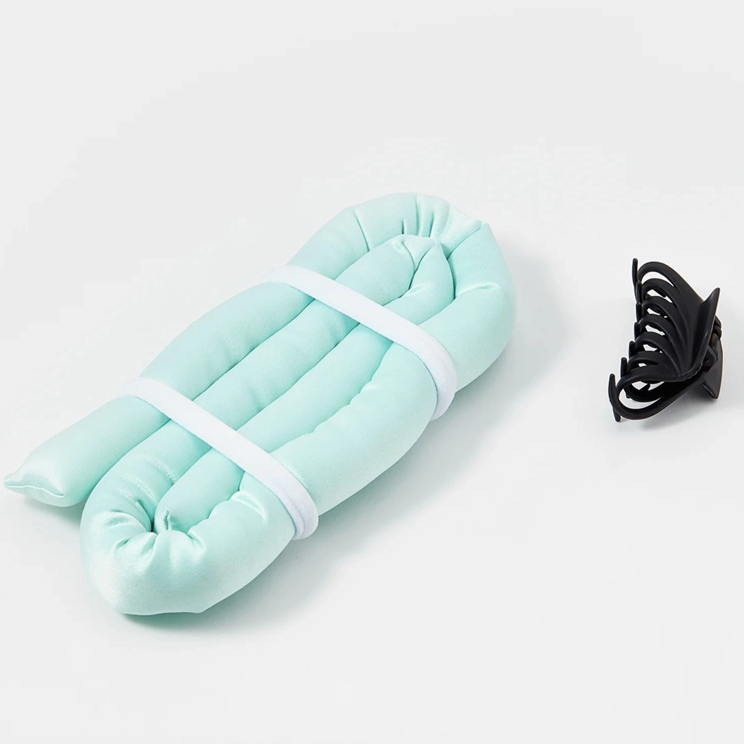 Secure the curler on one side with a claw clip and begin twisting the curls around it, starting from the top and going downwards in horizontal sections. Once you get to the bottom, tie the hair around the curler using a hairband, and use a claw clip to hold the curler in place