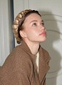 Secure the curler on one side with a claw clip and begin twisting the curls around it, starting from the top and going downwards in horizontal sections. Once you get to the bottom, tie the hair around the curler using a hairband, and use a claw clip to hold the curler in place
