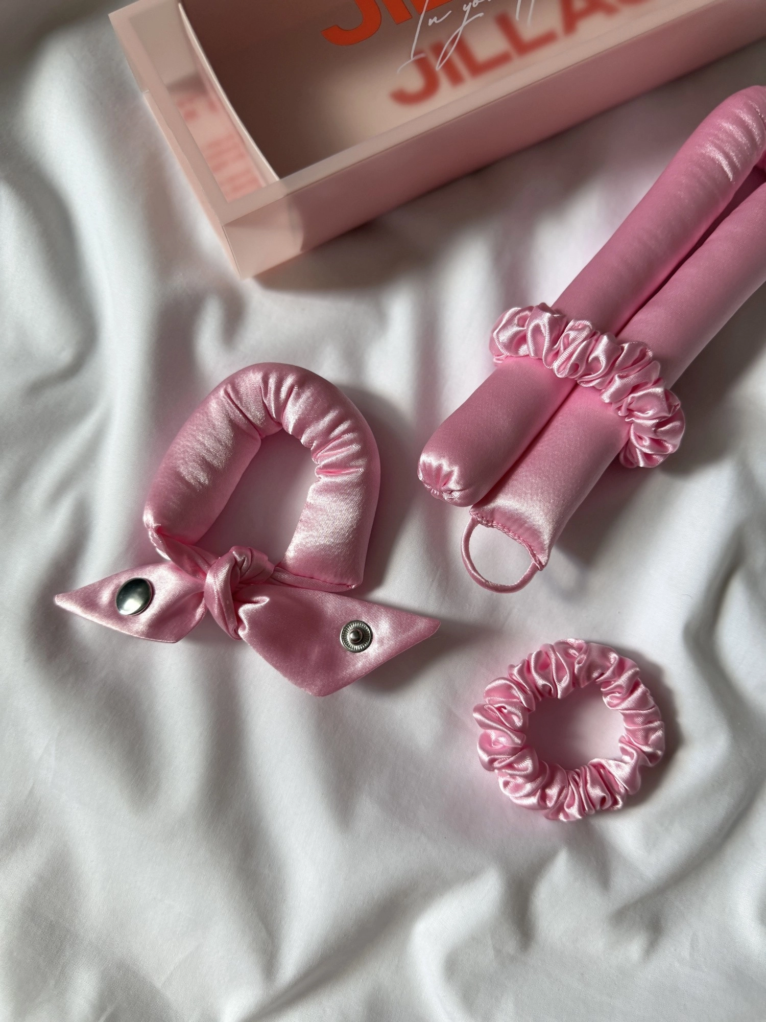 Secure the curler on one side with a claw clip and begin twisting the curls around it, starting from the top and going downwards in horizontal sections. Once you get to the bottom, tie the hair around the curler using a hairband, and use a claw clip to hold the curler in place