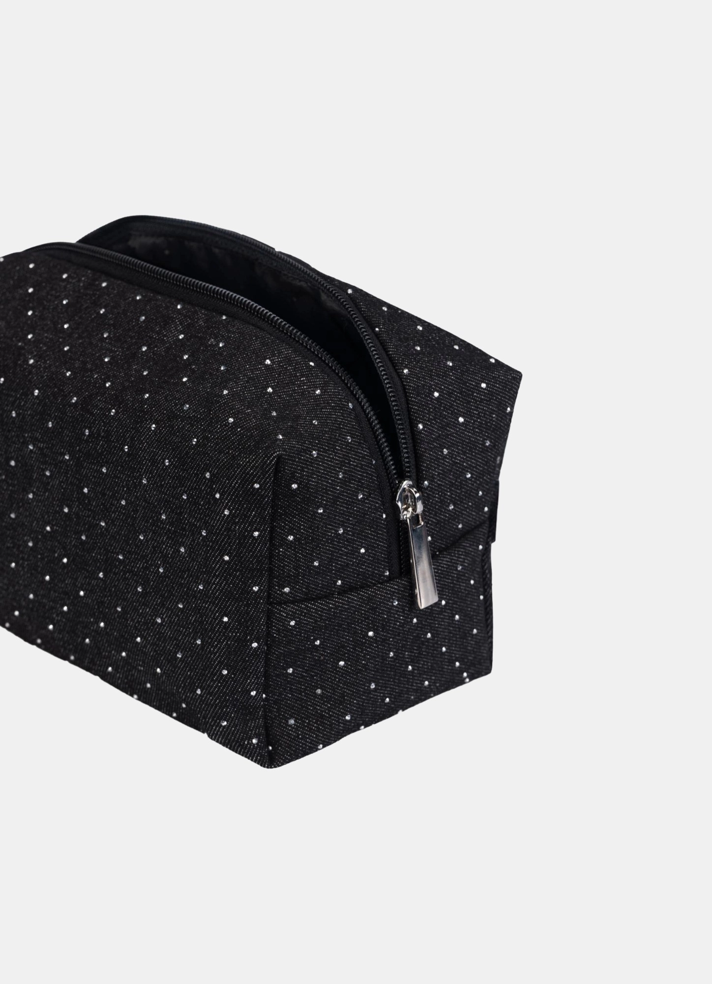 Cosmetic bag jillas denim with rhinestones, black