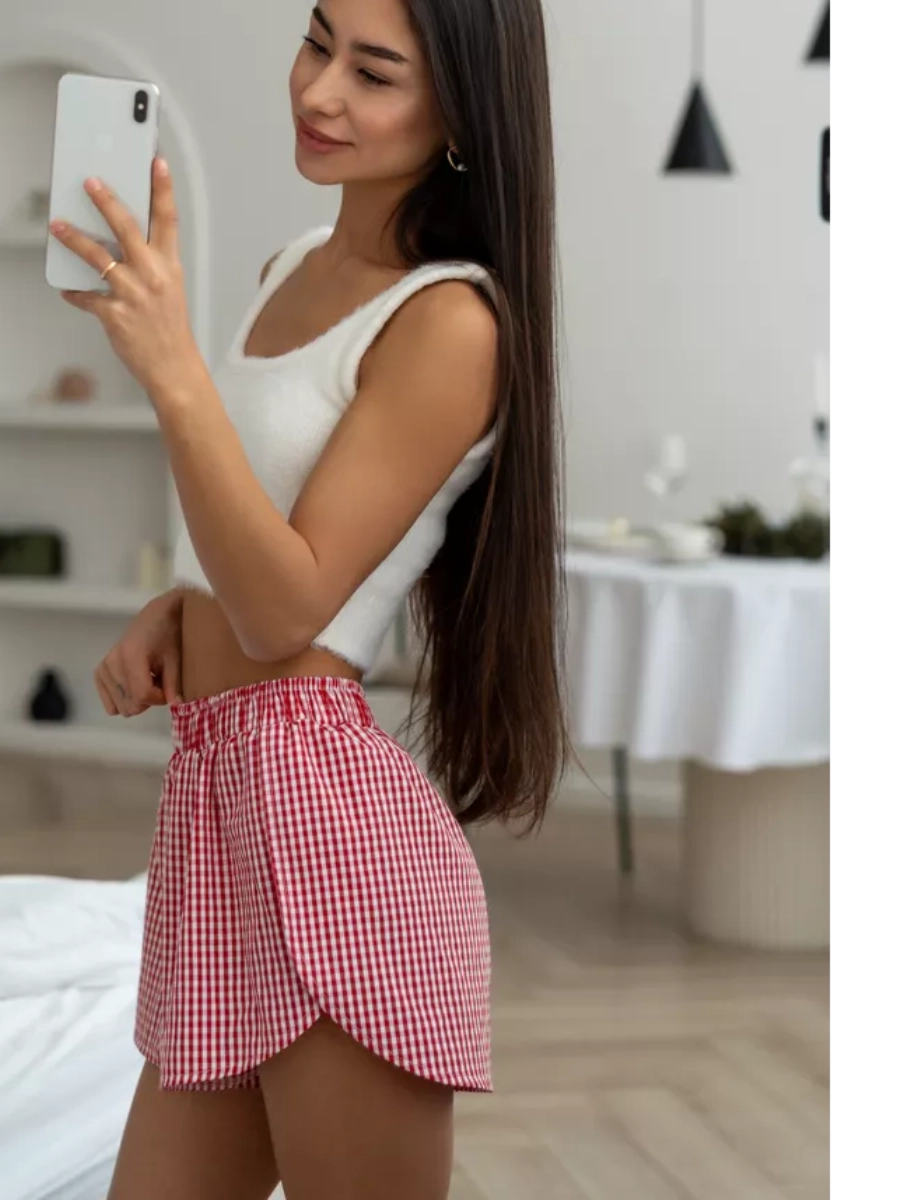 Pajama shorts jillas in small plaid, red, XS-S